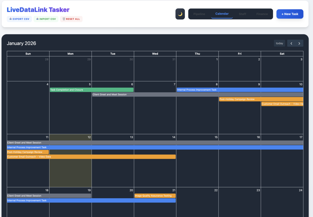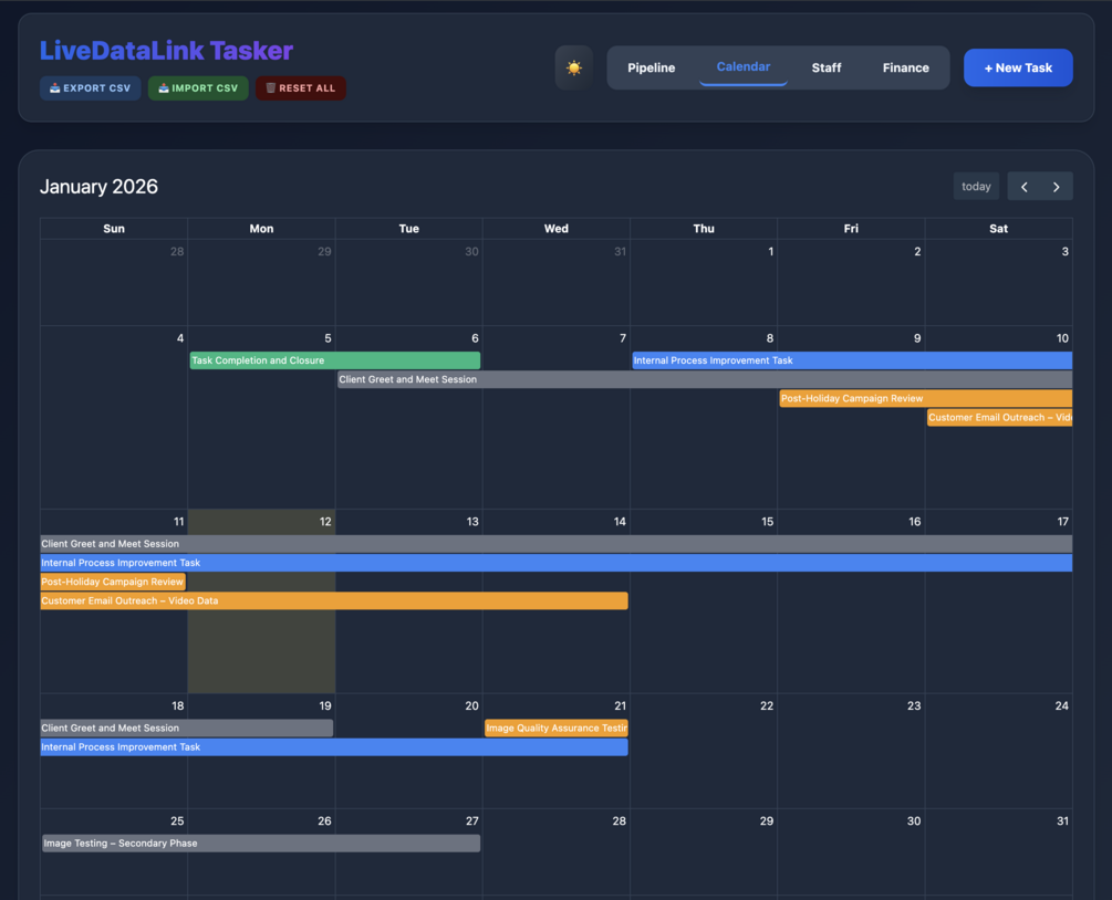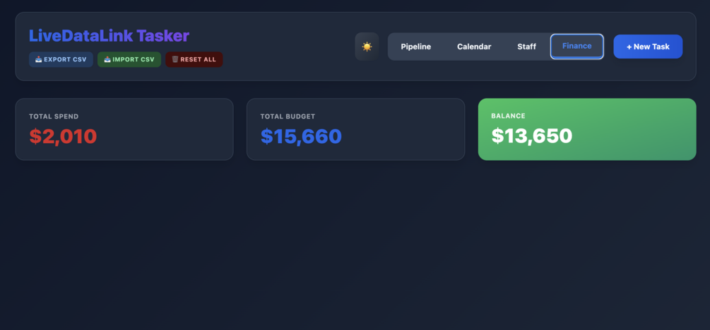 Scheduler, Calendar, Staff, Budget & Finance Manager with CSV Import/Export